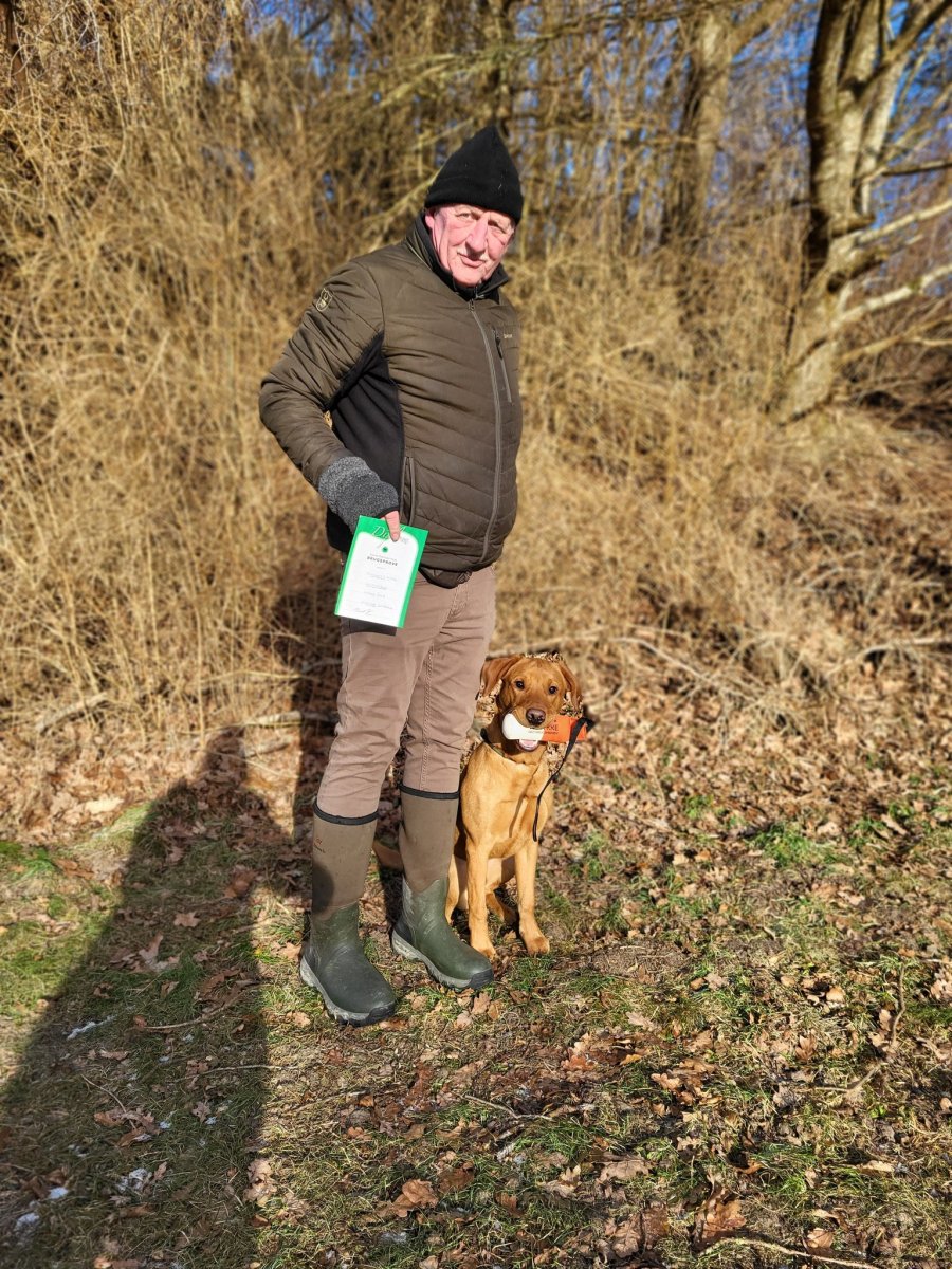 Vi ønsker stort tillykke til Kristian Bech og Pinnmoors Sky Airis med bestået apporteringsprøve i Danmarks Jægerforbund.